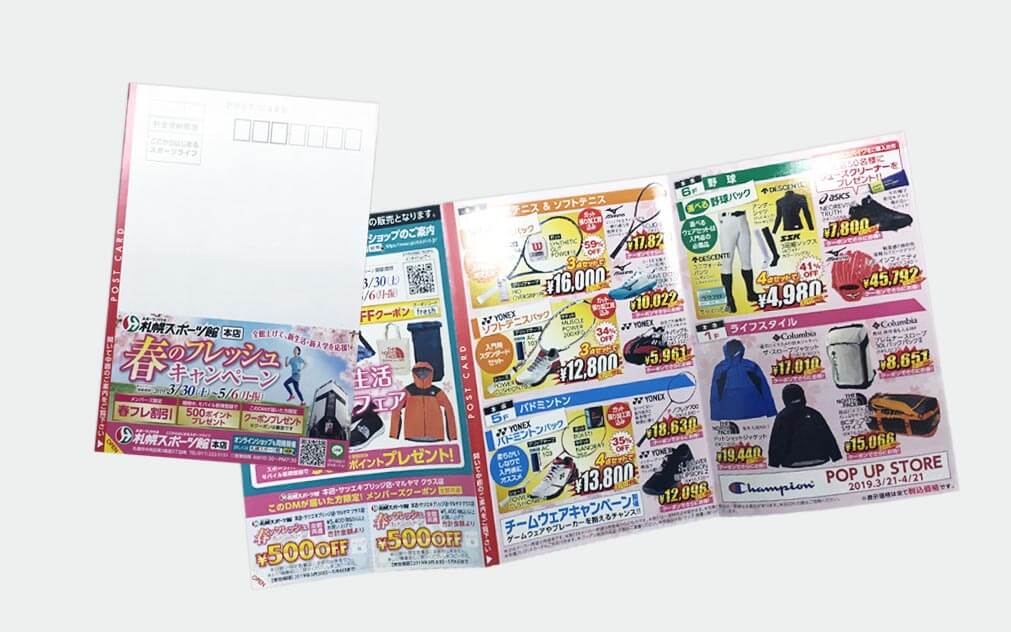 開封率を高めるDMとして人気の圧着DMは、印刷面が多いためより多くの情報を掲載できます。UV圧着機のある印刷会社は道内に2社のみです。(※当社含む)