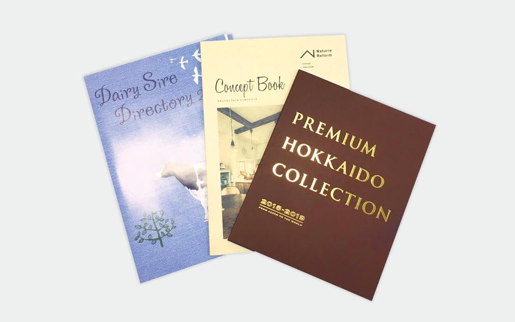 会社や製品・サービスのPRツールとして有効なパンフレット・リーフレット。中綴じ・無線綴じなど、さまざまな綴じに対応いたします。